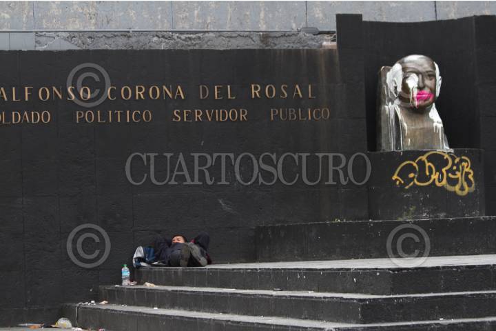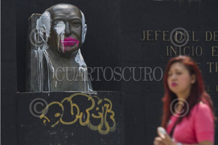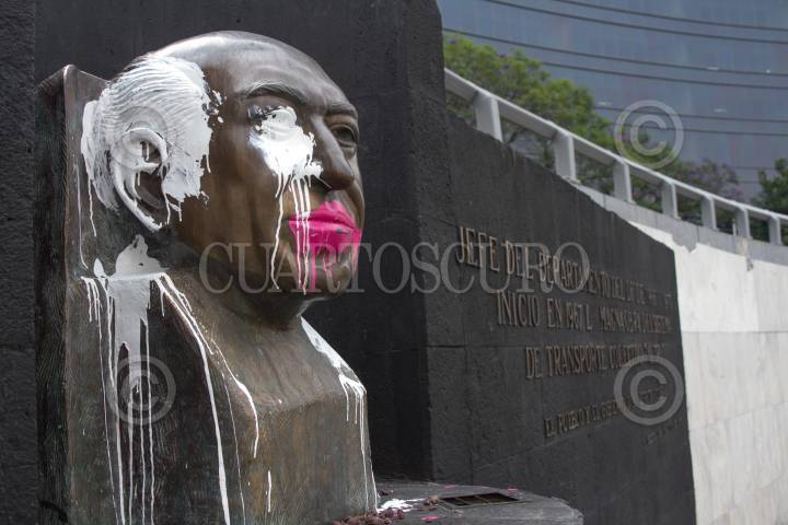 CIUDAD DE MÉXICO, 26ABRIL2016.- El busto en honor a Alfonso Coronal del Rosal, ex líder del PRI, fue vandalizado. El monumento se ubica en la Glorieta de los Insurgentes. FOTO: MOISÉS PABLO /CUARTOSCURO.COM