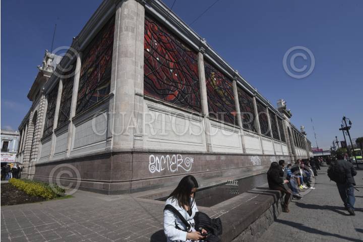 TOLUCA, ESTADO DE MÉXICO, 09DICIEMBRE2016.- Una de las paredes del Jardín Botánico Cosmovitral en la ciudad de Toluca, fue vandalizado con cuatro pintas en la fachada del lado de la avenida Lerdo. FOTO: PILAR AGUILAR /CUARTOSCURO.COM
