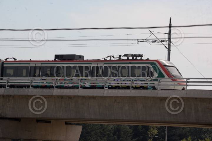 TOLUCA, ESTADO DE MÉXICO, 04DICIEMBRE2017.- Uno de los vagones del Tren Interurbano México-Toluca fue vandalizado durante la madrugada de este día, colocando graffitis en ambos costados, los trenes permanecen parados en el estación de Zinacantepec. FOTO: ARTEMIO GUERRA BAZ /CUARTOSCURO.COM