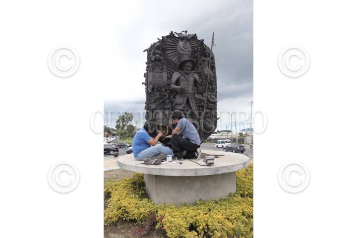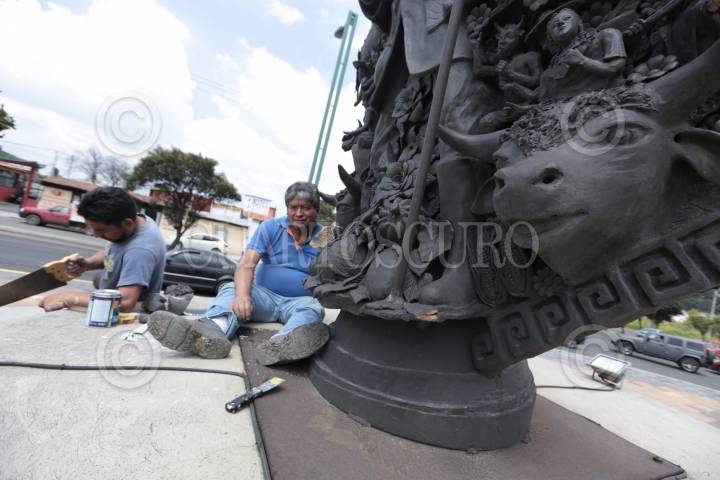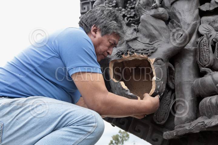 METEPEC, ESTADO DE MÉXICO, 17AGOSTO2018.- El maestro artesano Tiburcio Soteno reparó el árbol de la vida que fue vandalizado en el jardín lineal de Metepec en días pasados. FOTO: ARTEMIO GUERRA BAZ /CUARTOSCURO.COM