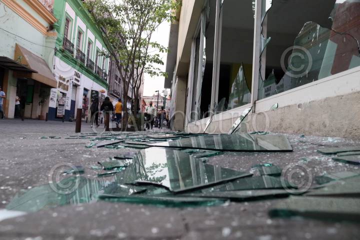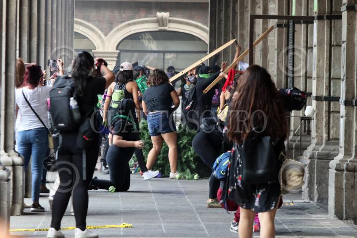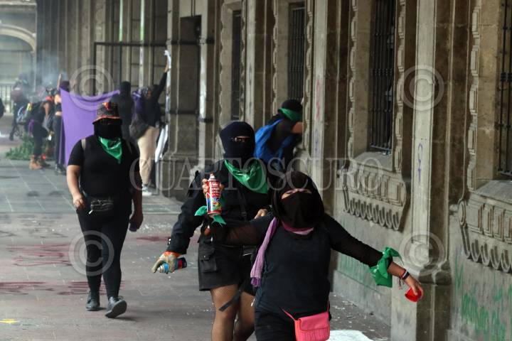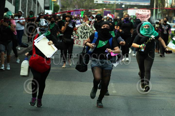 Marchan cientos de mujeres en Cuernavaca para conmemorar el Día Internacional de la Mujer, vandalizan negocios y el Palacio de Gobierno de Morelos.