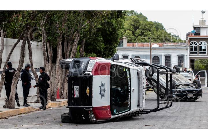 Tecali de Herrera; vandalizaron patrullas durante manifestación por la muerte de un civil, la cual ocurrió supuestamente, en una balacera con la policía municipal.