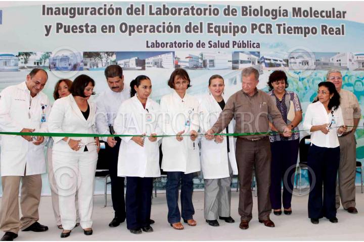 VILLAHERMOSA, TABASCO, 14AGOSTO2009.- El gobernador Andrés Granier Melo inauguro junto con el Secretario de Salud loca,l el laboratorio de Biología Molecular y la puesta en operación del equipo PCR tiempo real, con la intención de estar a la vanguardia y poder detectar a tiempo la presencia del virus AH1N1. Esto se dio en el Hospital de Altas Especialidades. FOTO: MARCO POLO GUZMÁN HERNÁNDEZ/CUARTOSCURO.COM