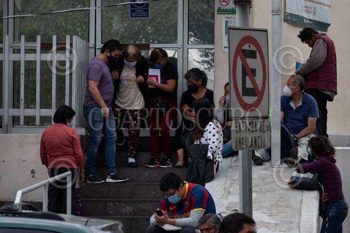 Familaires esperan afuera de la unidad Covid-19 del Hospital Venados en la alcaldía Benito Juárez.