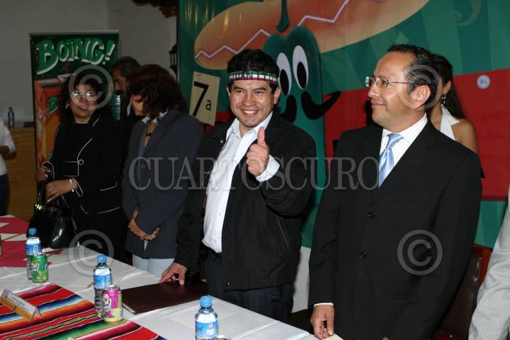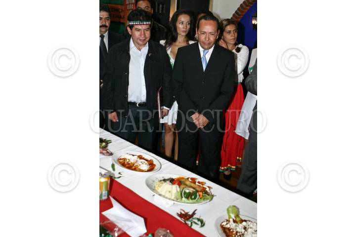 MÉXICO, D.F., 27AGOSTO2009.- Rafael Acosta "Juanito", delegado electo de Iztapalapa y Longinos Garcia Rios, delegado de Iztapalapa durante la presentación de la Feria de la Enchilada que se realizará del 4 al 13 de septiembre próximo, con alrededor de 300 variedades del platillo mexicano. FOTO: RODOLFO ANGULO/CUARTOSCURO.COM