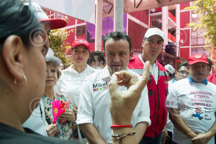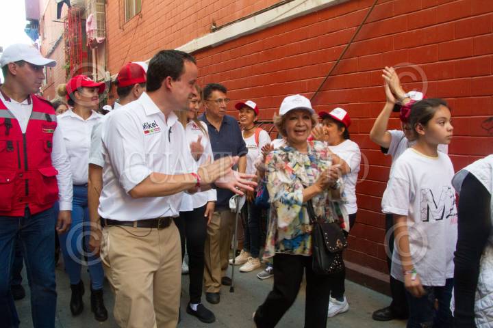 CIUDAD DE MÉXICO, 28MAYO2018.- El aspirante del PRI a la jefatura del Gobierno de la Ciudad, Mikel Arriola Peñalosa, acudió a las viviendas del popular barrio bravo del Tepito. Como parte de su gira proselitista. FOTO: VICTORIA VALTIERRA /CUARTOSCURO.COM