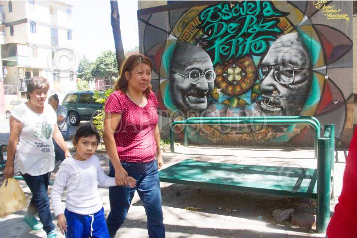 MÉXICO, D.F. 30JULIO2013.- La delegación Cuauhtémoc realizó mantenimiento y remozamiento de diversas unidades habitacinales en el barrio de Tepito. Con ayuda de vecinos, se pintaron guarniciones, podaron árboles y jardines, al igual que mantenimiento a luminarias en mal estado. FOTO: JUAN PABLO ZAMORA /CUARTOSCURO.COM
