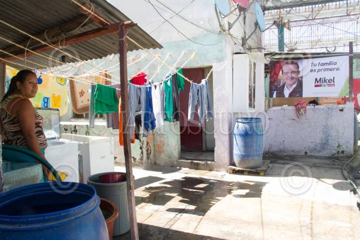 MÉXICO, D.F. 30JULIO2013.-En algunas unidades del "Barrio bravo", sus pilares se han vencido debido a la ampliación o desdoblamiento de sus espacios, por lo que se han colocado "polines". Hoy, la delegación Cuauhtémoc realizó mantenimiento y remozamiento de diversas unidades habitacionales en el barrio de Tepito. FOTO: JUAN PABLO ZAMORA /CUARTOSCURO.COM