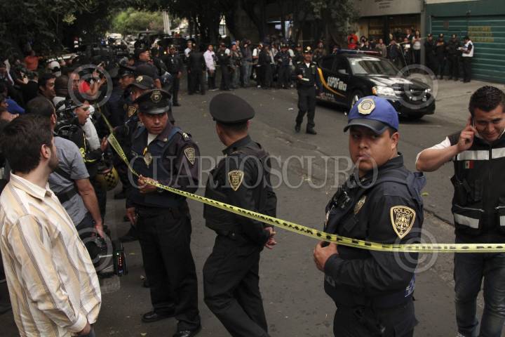 MÉXICO, D.F.,14MARZO2014.- Tras siete horas de negociación con un hombre se encontraba atrincherado después de disparar contra uno de sus vecinos en la calle Puebla en la colonia Roma, el agresor fue detenido y llevado al ministerio público abordo de la patrulla P24-38 del sector Roma. Jesús Rodriguez Almeida Secretario de Seguridad Pública acompañado de Luis Rosales Gamboa, Subsecretario de la SSP-DF acudieron al lugar para negociar con el detenido debido a que amenazaba con quitarse la vida. FOTO: SAÚL LÓPEZ /CUARTOSCURO.COM