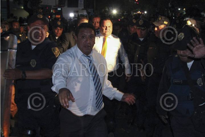 MÉXICO, D.F.,14MARZO2014.- Tras siete horas de negociación con un hombre se encontraba atrincherado despues de disparar contra uno de sus vecinos en la calle Puebla en la colonia Roma, el agresor fue detenido y llevado al ministerio público abordo de la patrulla P24-38 del sector Roma. Jesús Rodriguez Almeida Secretario de Seguridad Pública acompañado de Luis Rosales Gamboa, Subsecretario de la SSP-DF acudieron al lugar para negociar con el detenido debido a que amenazaba con quitarse la vida. FOTO: SAÚL LÓPEZ /CUARTOSCURO.COM