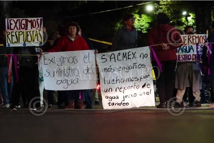 CIUDAD DE MÉXICO, 26ENERO2024.- Vecinos de la colonia Barrio del Niño de Jesús realizaron un bloqueo en ambos sentidos de la Avenida Miguel Ángel de Quevedo al cruce con Fernández Leal, esto para exigir a las autoridades el suministro de agua potable en dicha colonia de la alcaldía Coyoacán. FOTOS: ROGELIO MORALES /CUARTOSCURO.COM