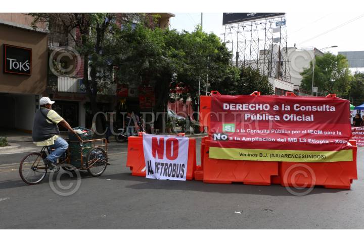 Inconformes bloquearon Avenida Cuauhtémoc, en protesta a la ampliación de la Linea 5 del Metrobús, los manifestantes buscan dialogo con Claudia Sheinbaum, jefa de Gobirno de la ciudad.