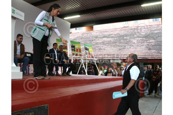 Claudia Sheinbaum, jefa de gobierno de la ciudad, durante el evento "Rescate de Unidades Habitacionales", el cual tiene como objetivo mejorar y dar mantenimiento a la s viviendas. Dicho evento se realizó en Unidad "El Rosario”. FOTO: ROGELIO MORALES /C