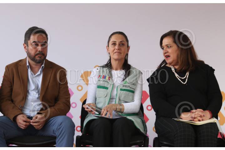 Vidal Llerenas, alcalde de Azcapotzalco, Claudia Sheinbaum, jefa de gobierno de la ciudad y Patricia Ruiz, procuradora social, durante el evento "Rescate de Unidades Habitacionales", el cual tiene como objetivo mejorar y dar mantenimiento a la s viviendas