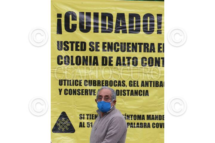 Adulto mayor, observa a distancia el Kiosco de la Salud ubicado en Paseo Cri-cri en la alcaldía Magdalena Contreras.