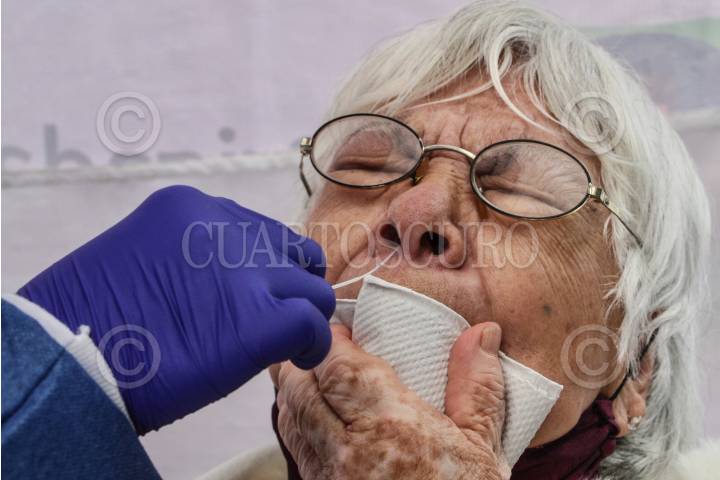 Adulto mayor durante toma de muestra para la detección de COVID-19, en kiosco de la Salud en la alcaldía Magdalena Contreras.