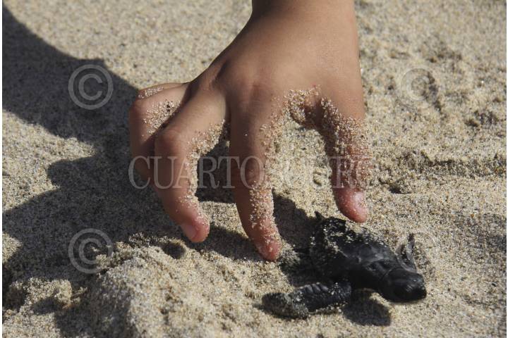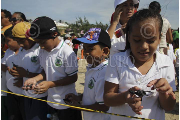 SALINA CRUZ, OAXACA 28SEPTIEMBRE2012.- Un aproximado de 4 mil tortugas golfinas fueron liberadas este viernes en la Playa Abierta de Salina Cruz, en el Istmo de Tehuantepec, esto como parte del programa "Protección a Especies en Peligro" que lleva a cabo la Secretaría de Marina. En este sexenio han sido liberados 28 mil quelonios en la Décimo Segunda Zona Naval, con base en Salina Cruz. En esta actividad participaron cerca de 600 niños de primaria y secundaria a quienes se les dio una tortuga para que la colocaran en la arena y esta avanzara hacia el mar. De acuerdo con estimaciones de la Estación de Investigación Oceanográfica de las 4 mil tortugas solamente lograrán sobrevivir cerca de 400 debido a las adversidades de su entorno. FOTO: JORGE ARTURO PÉREZ ALFONSO /CUARTOSCURO.COM