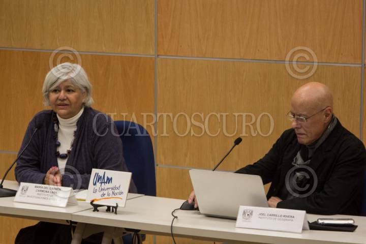 CIUDAD DE MÉXICO, 19JUNIO2018.- María del Carmen Carmona Lara, investigadora del Instituto de Investigaciones Jurídicas de la Universidad Nacional Autónoma de México (UNAM), y Joel Carrillo Rivera, investigador del Instituto de Geografía, ofrecieron conferencia de prensa para dar detalles respecto al retiro de la veda para explorar cuencas hídricas en México, consecuencia de las recientes decretos aprobados en materia de reserva de agua, y que han desencadenado polémica por la supuesta privatización del vital líquido. FOTO: GALO CAÑAS /CUARTOSCURO.COM