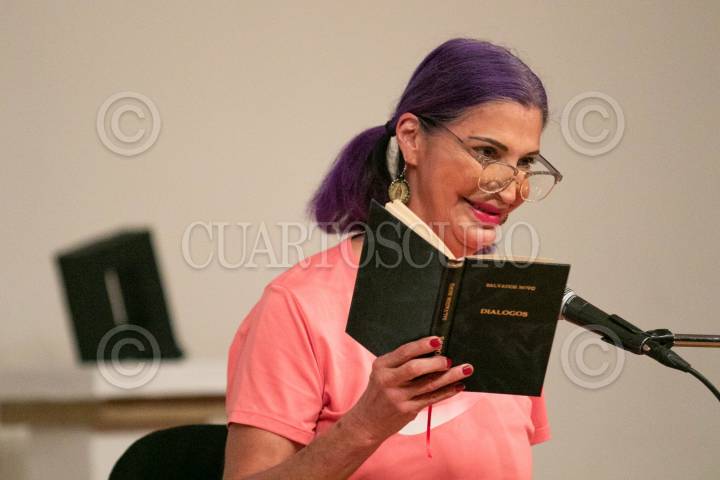 CIUDAD DE MÉXICO, 30JUNIO2024.- La vedette Alejandra Bogue realizó una lectura de "Diálogos" de Salvador Novo, en conmemoración del 50 aniversario luctuoso del poeta y dramaturgo, en la sala Manuel M. Ponce del Palacio de Bellas Artes. El encuentro se realizó en el marco del ciclo ¡Leo.. luego existo! y también sirvió para celebrar el Día del Orgullo LGBTTTIQ+. FOTO: MOISÉS PABLO/CUARTOSCURO.COM