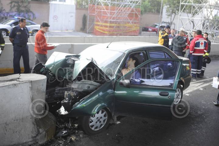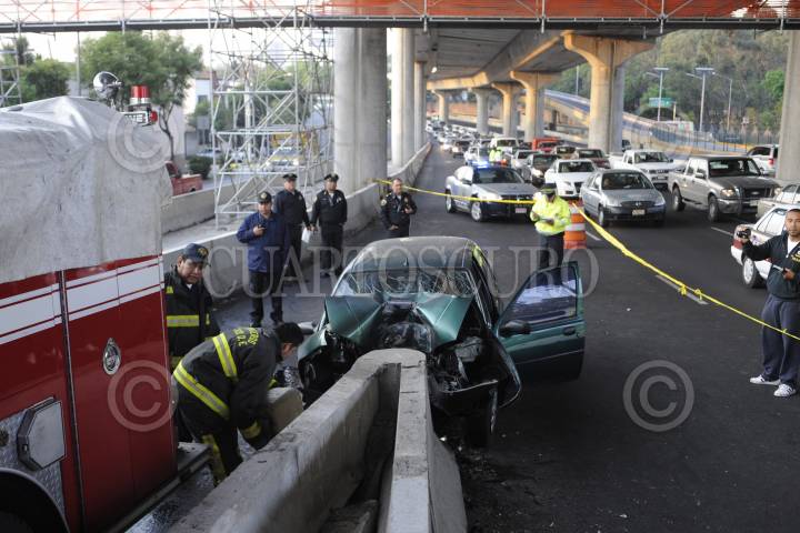 MÉXICO, D.F., 14ABRIL20120.- Un hombre de aproximadamente 30 años perdió la vida al impactar su auto Ford Ikon contra la aguja de salida de los carriles centrales del Periférico a la altura de la calle Dolores Jiménez y Muro en la colonia Periodista, de la Delegación Miguel Hidalgo. Los paramédicos acudieron al lugar para reanimarlo pero nada pudieron hacer por este hombre. FOTO: LUIS CARBAYO /CUARTOSCURO.COM