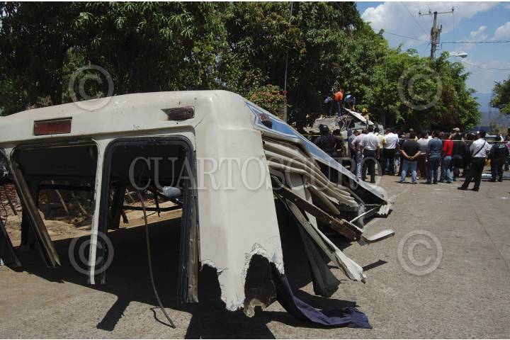 URUAPAN, MCHOACÁN, 13JUNIO2012.- Once personas fallecieron, ocho adultos, entre padres de familia y profesores, así como tres niños, en tanto que más de 30 resultaron lesionados, la mayoría son menores de edad, luego de que el microbús en que viajaban, se quedara sin frenos en una pendiente en el poblado de San Marcos, dos kilómetros antes de El Sabino, a donde se dirigían a visitar el cocodrilario. FOTO: LA VOZ DE MICHOACÁN /CUARTOSCURO.COM