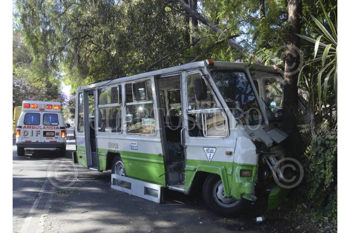 MÉXICO, D.F., 18MARZO2014.- Un microbus de la ruta 1 chocó choque se estrello contra un árbol, dejando un saldo de 6 heridos, el percance se suscitó cuando circulaba en avenida de La Viga y Rodolfo Usigli, colonia Escuadrón 201. FOTO: LUIS CARBAYO /CUARTOSCURO.COM