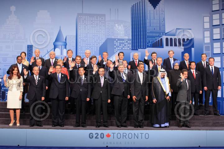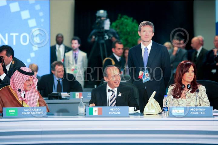 TORONTO, CANADA, 27JUNIO2010.- Felipe Calderón, Presidente de México, durante los lideres del G-20 en el Main, Press Theatre del Metro Toronto Convention Center. FOTO: ALFREDO GUERRERO/CUARTOSCURO.COM
