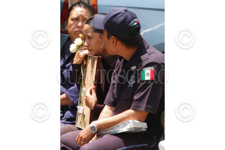 MÉXICO, D.F., 15JULIO2009.- Familiares de los Policías Federales, que perdieron la vida durante el enfrentamiento en Michoacan. Esperan los cuerpos en las funerarias donde serán velados sus restos en la Ciudad de México. Entre estos se encontraba un paramedico de la Cruz Roja de esa entidad. FOTO: LUIS CARBAYO/CUARTOSCURO.COM