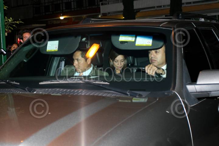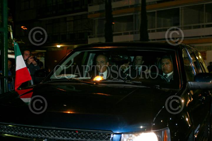 MÉXICO D.F., 05NOVIEMBRE2008.- El presidente Felipe Calderón Hinojosa, acudió esta noche a una conocida agencia funeraria donde se velan los restos de Juan Camilo Mouriño quien falleciera el día de ayer en el accidente aéreo en Av. Reforma y Periférico. FOTO: GUILLERMO PEREACUARTOSCURO.COM