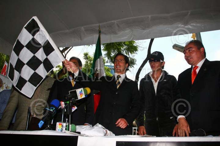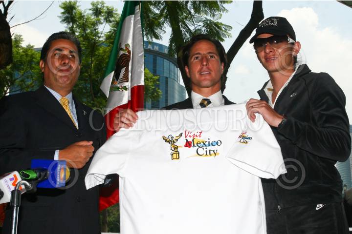 MÉXICO, D.F., 13MAYO2008.- El piloto mexicano Mario Domínguez fue designado por el Gobierno del Distrito Federal como embajador de Turismo y Deporte de la ciudad de México. FOTO: ISAAC ESQUIVEL/CUARTOSCURO.COM