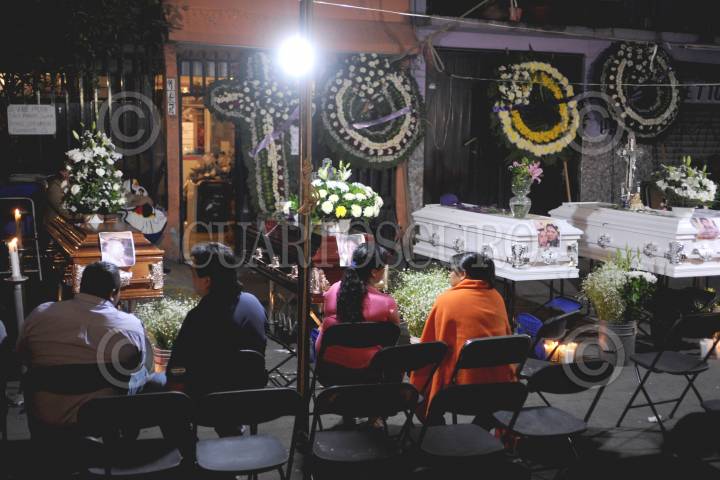 ECATEPEC ESTADO DE MÉXICO., 08MAYO2013.- Familiares de las personas fallecidas en la tragedia el día de ayer, ocasionada por la pipa de gas en Xaloxtoc. Velan los cuerpos de sus familiares, algunos en plena vía pública a causa de la falta de recursos económicos. Como el que se realiza en la calle Cuauhtémoc en donde se velan 5 integrantes de una familia entre estos un menor. FOTO: LUIS CARBAYO /CUARTOSCURO.COM