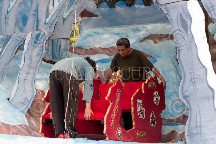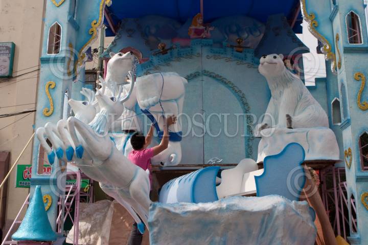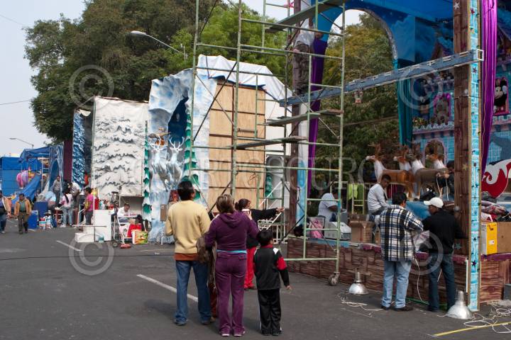 MÉXICO D.F., 20DICIEMBRE2009.- Los escenarios en donde se instalarán los tradicionales Santa Claus y Reyes Magos no se encuentran terminados ya que algunos todavía se ven trabajadores montando la escenografía. Estos escenarios estarán instalados a un costado de la Alameda Central. FOTO: RODOLFO ANGULO/CUARTOSCURO.COM