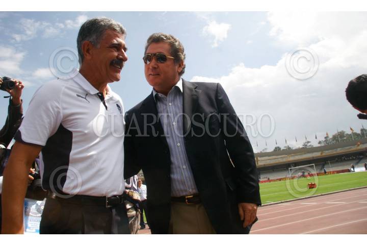 MÉXICO D.F., 25OCTUBRE2009.- Ricardo "el tuca" Ferreti, director técnico de los Pumas de la UNAM saluda a Víctor Manuel Vucetich Rojas, director técnico de los Rayados del Monterrey momentos antes de inciar el partido de la jornada 13 del torneo Apertura 2009 que se realizo en el estadio Olímpico Universitario en el cual Pumas vencio 2 goles a 1. FOTO: ALEJANDRO SANTILLANES/CUARTOSCURO.COM