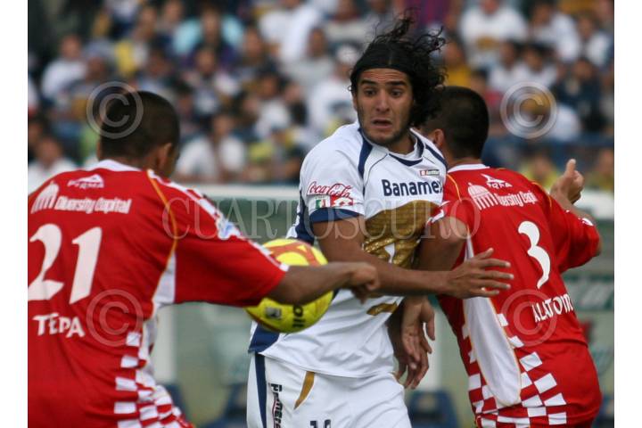 MÉXICO, D.F., 16MAYO2009.- Dante Lópe de los pumas de la UNAM corre con el balón durante el encuentro en contra de los Tecos de la UAG en partido de cuartos de final del Clausura 2009 del futbol mexicano; venciendo los Pumas 3 goles a 0 y pasando estos a las semifinales. FOTO: LUZ ACEVEDO/CUARTOSCURO.COM