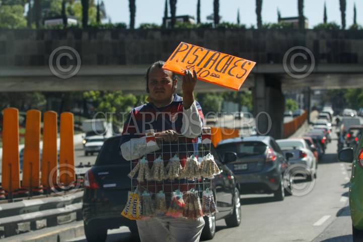 MÉXICO, D.F., 29ENERO2015.- Vendedor de pistaches sobre el arroyo vehicular del Circuito Interior FOTO: MOISÉS PABLO /CUARTOSCURO.COM