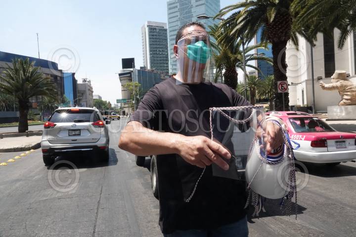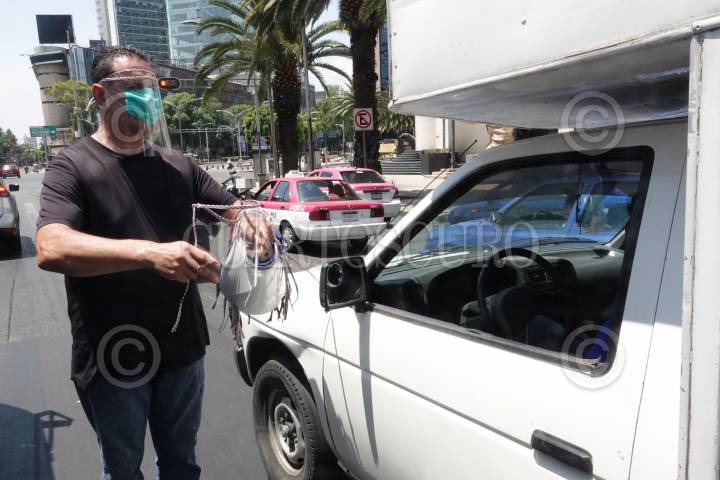 Un hombre vende caretas de fabricación casera en estos tiempos de Covid-19