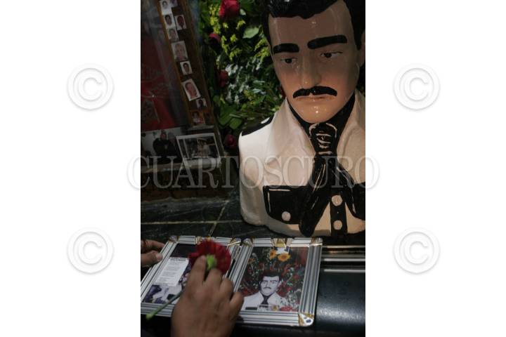 CULIACÁN, SINALOA 08MAYO2009.- Cada que un artículo es vendido por lo coerciantes de la capilla, si el cliente lo pide, es bendecido en el altar de Jesús Malverde. FOTO: IVAN STEPHENS/CUARTOSCURO.COM