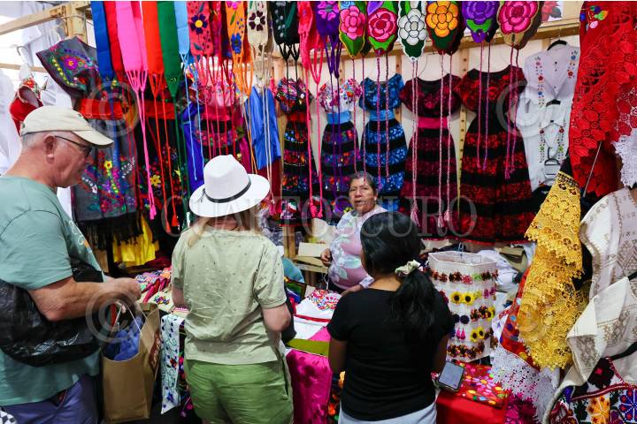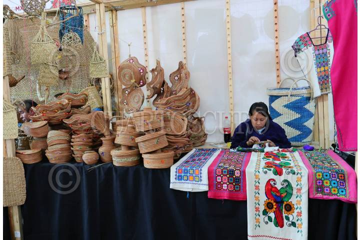 CIUDAD DE MÉXICO, 27DICIEMBRE2024.- La Verbena Navideña del Zócalo capitalino continúa con múltiples atractivos, entre ellos la feria “Artesanos en el corazón”, conformada por 252 expositores de 12 entidades del país, quienes ofrecen piezas de arte popular auténticas para las y los miles de visitantes de la Plaza de la Constitución. En los pasillos de la feria se encuentra la señora Feliciana Bautista, originaria de Michoacán, quien se dedica a la creación de prendas con la técnica de telar de cintura, los cuales destacan por su decoración con plumas de aves y diseños florales, al grado que han sido portados por diversos artistas. FOTO: GOBIERNO DE LA CIUDAD DE MÉXICO/CUARTOSCURO.COM