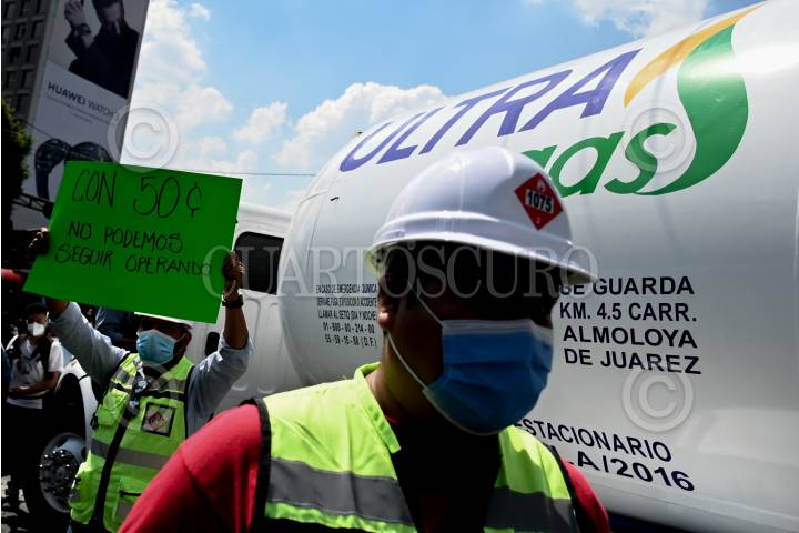 Gaseros se manifestaron afuera de las instalaciones de la Secretaría de Energía.