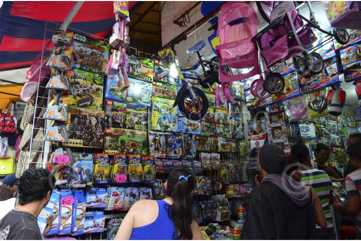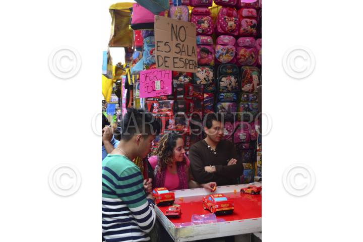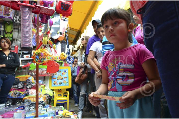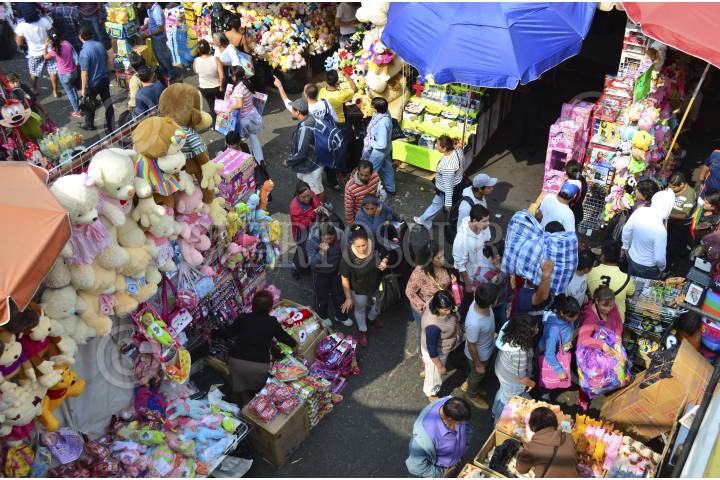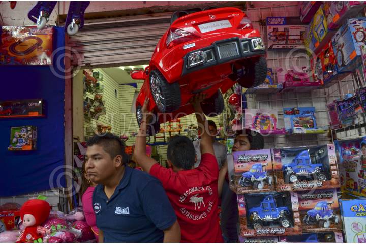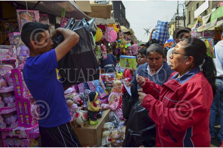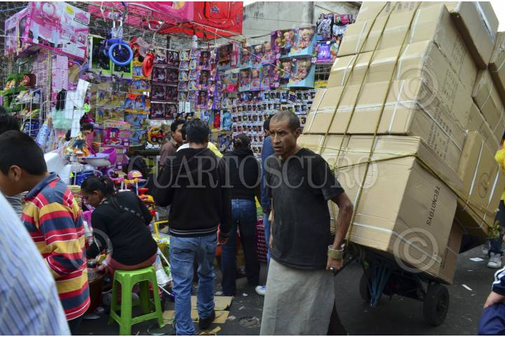 MÉXICO, DF., 23DICIEMBRE2013.- Las calles de Moneda, Carmen y República de Colombia permanecen abarrotadas por cientos de personas que acuden a la compra de productos navideños. Según Miguel Ángel Martín, presidente de la Asociación Mexicana de la Industria del Juguete, “la venta de juguetes más importante en el año se da entre el 10 de noviembre y hasta el 06 de enero”. FOTO: MARÍA JOSÉ MARTÍNEZ /CUARTOSCURO.COM