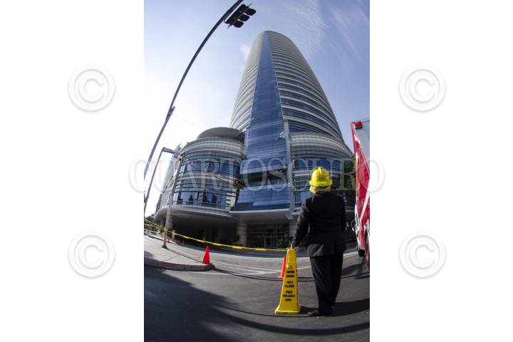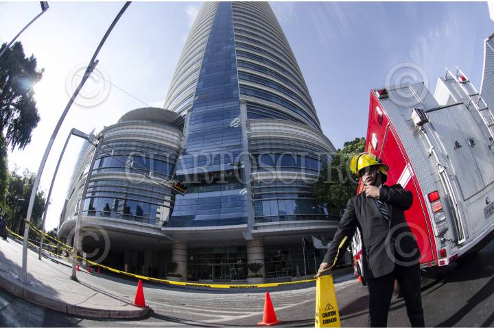 MÉXICO, D.F., 26DICIEMBRE2012.- Un ventanal del 4to piso del hotel St. Regis en Paseo de la Reforma, se desplomó sobre la acera de esta gran avenida. Al lugar arribaron elementos del H. Cuerpo de Bomberos así como de Protección Civil. En el lugar no hubo lesionados y se desconoce el motivo del desplome de la ventana. FOTO: EMILIANO BUSTILLOS / CUARTOSCURO.COM