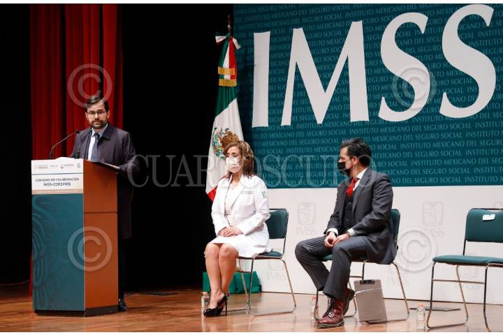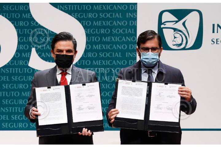 Zoe Robledo, director general del Instituto Mexicano del Seguro Social (IMSS), y Alejandro Svarch Pérez, titular de Cofepris, firmaron un acuerdo en donde se establecen las bases generales para la habilitación de las ventanillas de atención de Cofepris
