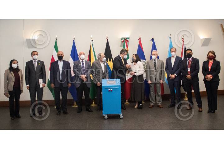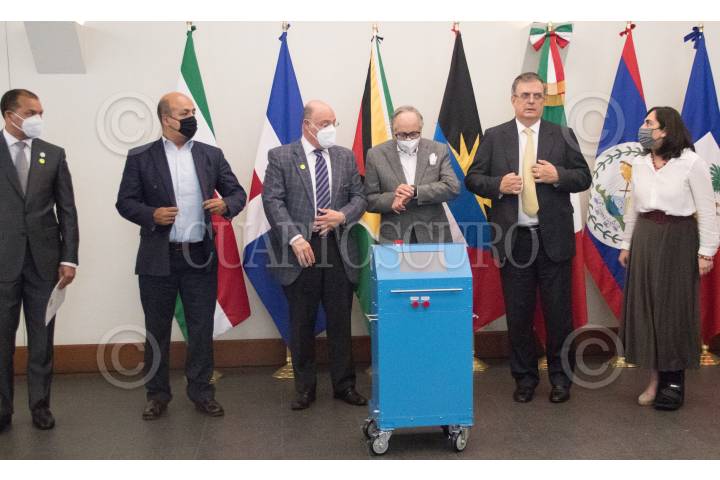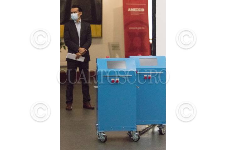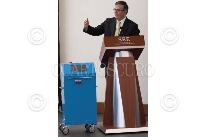 El Canciller Mexicano, Marcelo Ebrard, encabezó la presentación de los dispositivos médicos para ventilación mecánica fabricados en México, evento que se realizó en la Secretaría de Relaciones Exteriores.