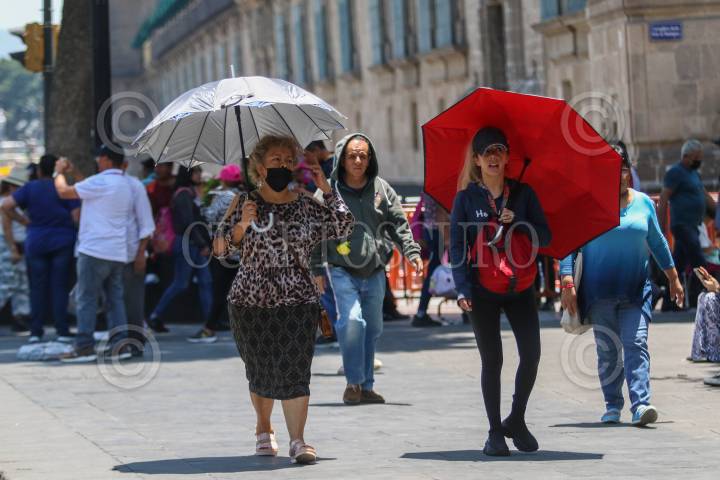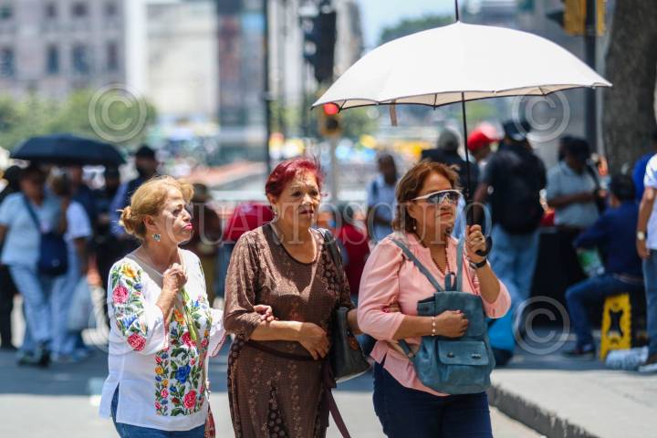 Continúa la ola de calor en la capital, por lo que ciudadanos salen con paraguas para mitigar el intenso sol, mientras que la venta de ventiladores ha ido en aumento.