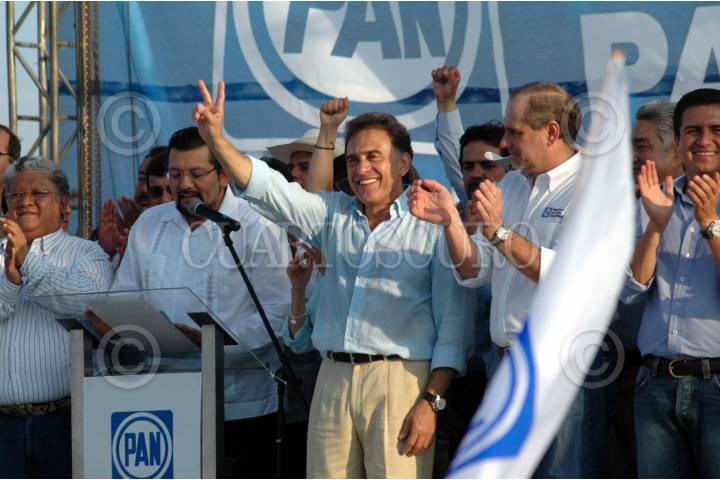 BOCA DEL RÍO, VERACRUZ. 21FEBRERO2010.- Miguel Ángel Yunes Linares, exdirector del ISSSTE y virtual candidato a la gubernatura del estado de Veracruz se reunió esta tarde ante mas de cincuenta mil simpatizantes del PAN provenientes de distintos municipios del estado, dicho mitin se desarrollo sobre el boulevard costero, Vicente Fox Quezada, de esta ciudad. FOTO: JOSÉ CANDELARIO/CUARTOSCURO.COM