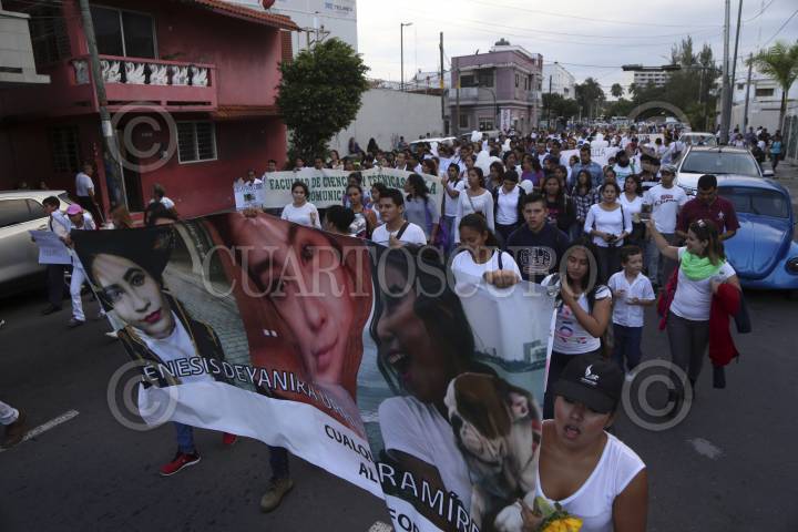 VERACRUZ, VERACRUZ., 10OCTUBRE16.- Estudiantes, académicos, amigos y familiares de de Génesis Urrutia, marcharon la tarde de este lunes partiendo del Tranvía del Recuerdo hacia la Fiscalía de Boca del Río exigiendo justicia para los jóvenes desaparecidos del estado. Los inconformes afirmaron que los jóvenes han sido el nuevo blanco del crimen organizado. FOTO: ILSE HUESCA /CUARTOSCURO.COM