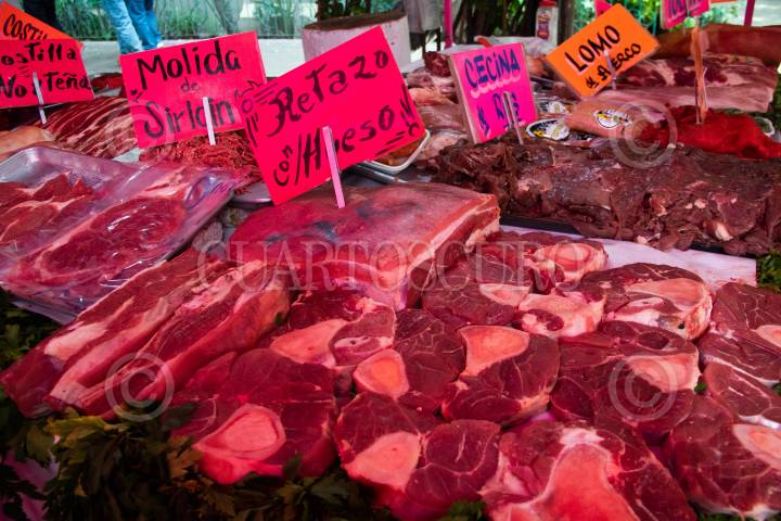 Carne roja, de venta en tianguis de la Colonia Condesa.