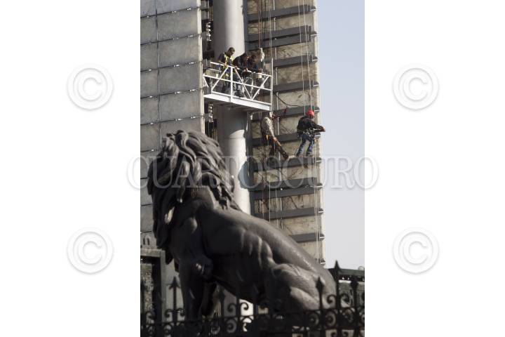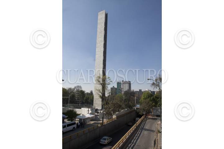 MÉXICO, D.F., 07ENERO2012.- La SEP anunció la inauguración de la Estela de Luz adelantándose un día a lo que se tenía previsto, esto tras el anuncio de varias protestas que se realizarían el día de mañana en el marco de su apertura. Este monumento que sería inaugurado en el marco de los festejos del Bicentenario ha estado en vuelto en la polémica, ya que originalmente costaría 365 millones de pesos, pero tras un retraso de más de un año en su edificación al fina costo poco más de 1000 millones de pesos. FOTO: MOISÉS PABLO/CUARTOSCURO.COM
