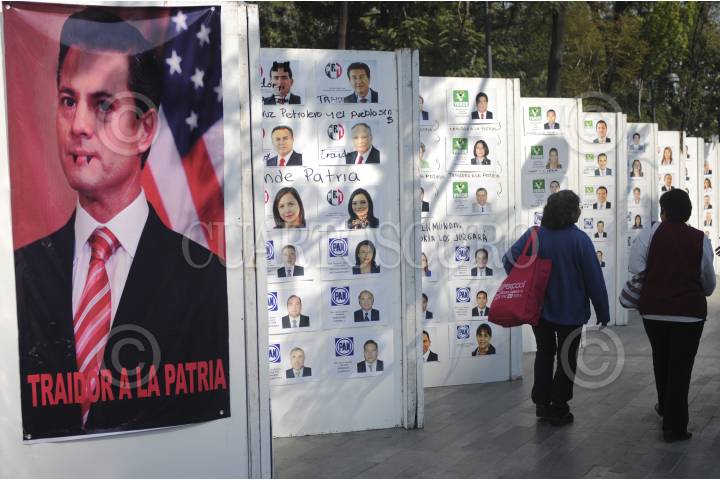 MÉXICO, D.F., 19DICIEMBRE2013.- En la Alameda Central fue montado el muro de la vergüenza dedicado a los legisladores que votaron a favor de la privatización de Petroleos Mexicanos. FOTO: IVÁN STEPHENS /CUARTOSCURO.COM