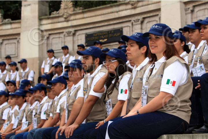 MÉXICO, D.F., 31AGOSTO2010.- Marcelo Ebrad Casaubon, jefe de gobierno capitalino, encabezo esta mañana, la protesta a 300 nuevos verificadores, integrantes del Instituto de Verificación Administrativa del Distrito Federal durante un acto solemne en la Tribuna Monumental en Honor al Escuadrón 201, Chapultepec. FOTO: CUARTOSCURO.COM